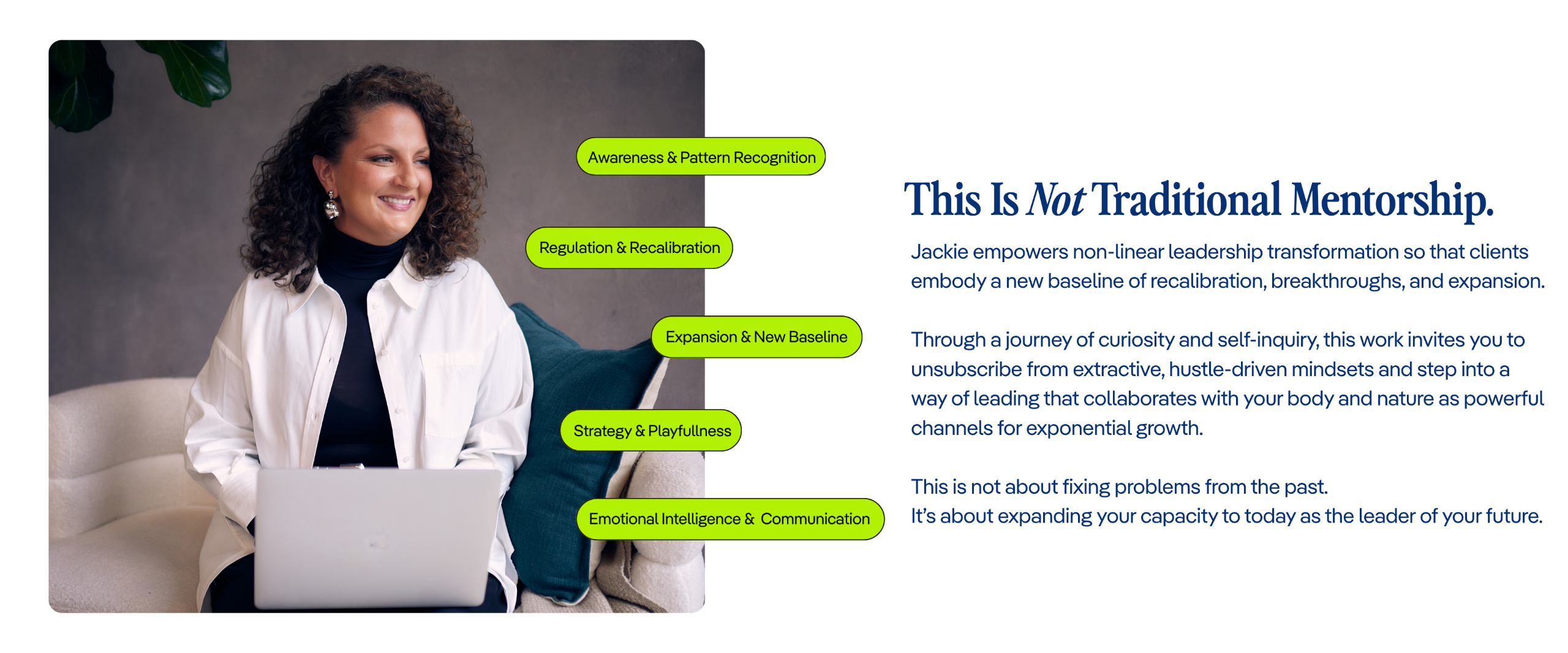“Jackie’s leadership methodology moved me from a dysregulated to a regulated nervous system—and the impact has been profound.”